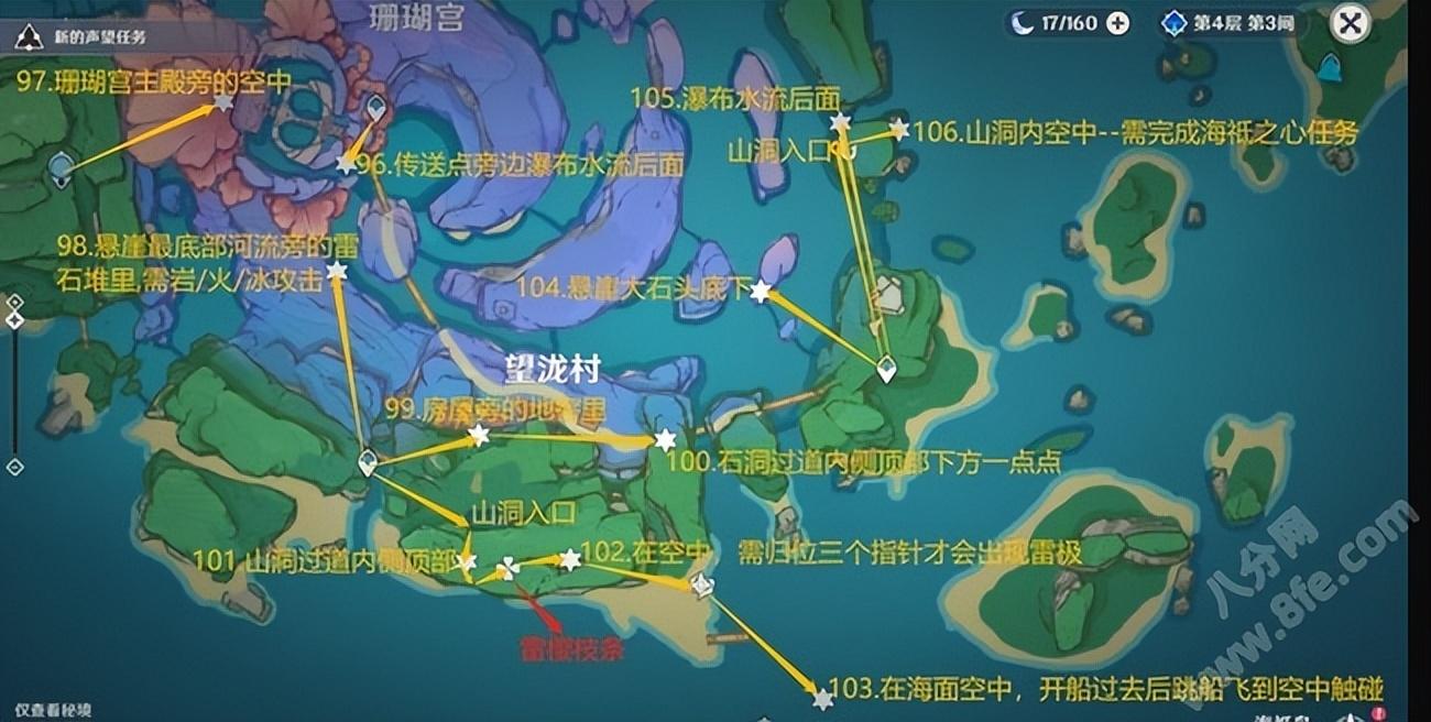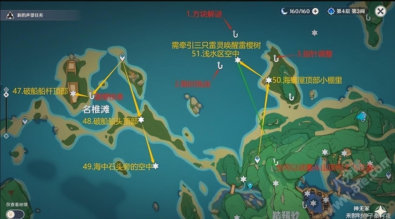 51.浅水区空中,需牵引三只雷灵唤醒雷樱树