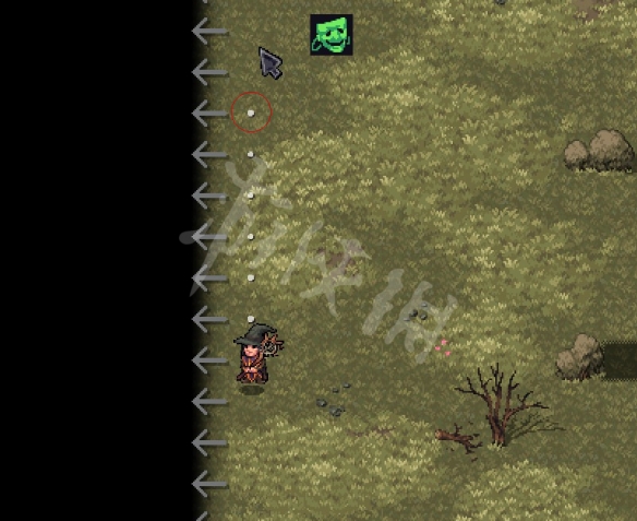 你用鼠标在你前面的一条直线上点击一次,一旦你的角色开始移动,按住指向角色移动方向的箭头,该角色将继续走,直到松开箭头或者撞到障碍。