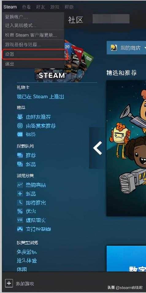 打开steam客户端,点击左上角的“steam”,接着选择“设置”。