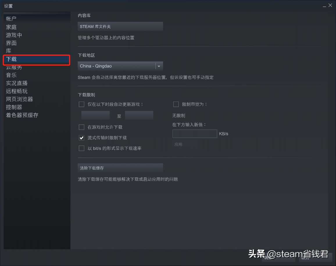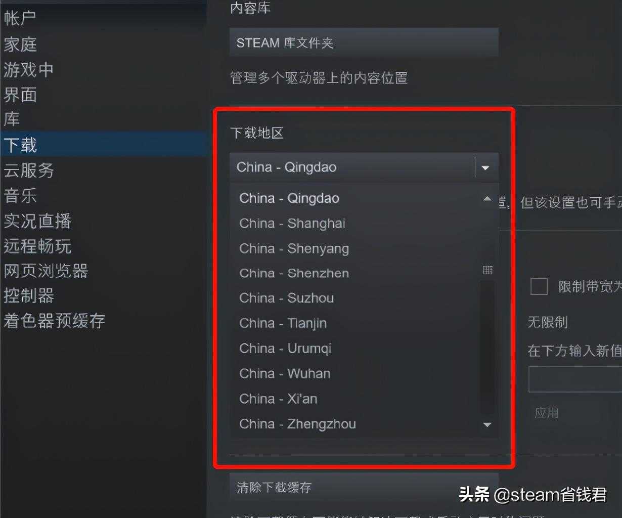 选择右侧“下载地区”设置按钮,更换一个下载地区,点击右下角确定。