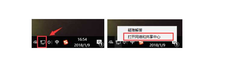 大家可以右击电脑右下角的网络,打开图片中的网络和共享中心。
