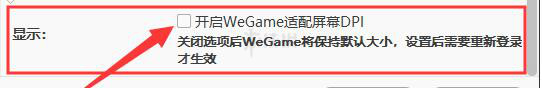 3:滚轮下滑找到显示的分类,里面有一个选项为是否开启Wegame适配屏幕DPI~如下图: