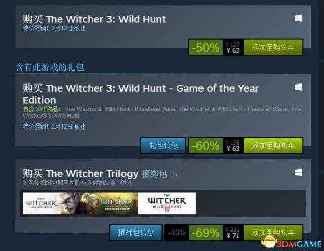 steam巫师3多少钱(巫师3狂猎年度版游戏仅售63元)