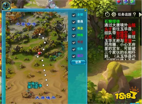 2、分支剧情2:该分支剧情需要带领唐僧的三个徒弟进入玉华县,可以通过轮流组队的形式带领可节约时间。以ABCDE为例说下组队方式,A、B、C为带领人,A组BCDE后,带领一个,然后将队长交给B,B将A踢出队伍后点击带领,随后解散队伍,C组DE后,点击带领,全部带领到唐僧面前后,由A/B/C三位玩家(PS,进入地图后如果遇见宫女会进行战斗,但是队伍少于3人可避免这个情况)。