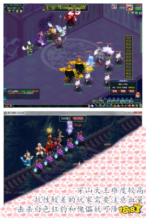 推荐组队门派:副本难度很低,可以携带大唐官府、花果山等单点突破能力强的物理门派,普陀山、无底洞、地府等固伤门派,龙宫、魔王、神木林等法系输出门派,如果队伍抗性较差的话,可以携带一个化生奶一下。