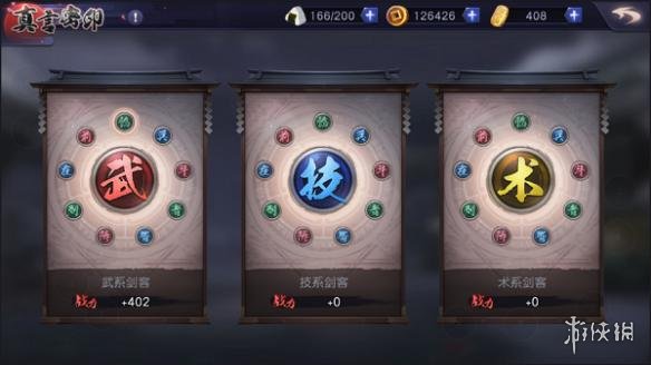 在该界面的每个位置都可以配置一个对应系的剑客,根据剑客的战斗力为对应系的全部剑客提供属性加成