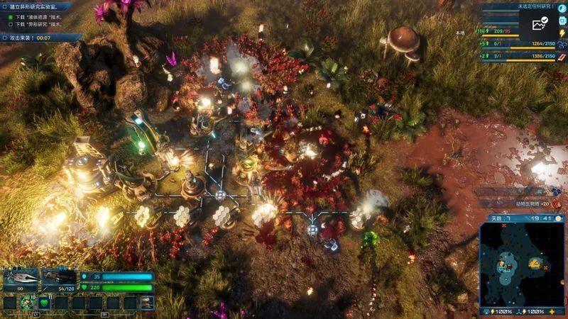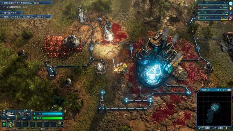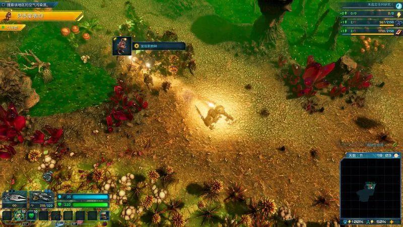 其实这种基地建造类型的游戏都有一个共性,就是当你一个区域的设施逐渐完整后,你总会不满足于现状,加之本作又不存在传统即时战略类游戏里那种造兵的设定,因此这也驱使你会有欲望前去开垦一些自己没有踏足过的位置。在探索新资源的路途中,还会出现一个额外的随机事件,事件之间的大致玩法区别并不算很大,基本就是清理敌人巢穴、剿灭某个目标或者是带回某个样品,完成这些任务可以为你带来一些资源上的补充,也算是让日常的探索过程不至于显得太过枯燥。