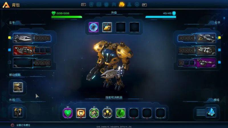 日常探索阶段,显而易见的是你不可能端着一个发电站和炮台满星球乱跑,这时玩家所驾御的机甲就成为了保证自己安全最重要的手段。随着探索的不断深入,你的机甲也可以解锁各项功能属性的定制和拓展,而非由始至终一尘不变,机甲的每个手臂都可以配置三种不同的装备,你可以根据战局的不同来自由改变自己当前的武器选择。