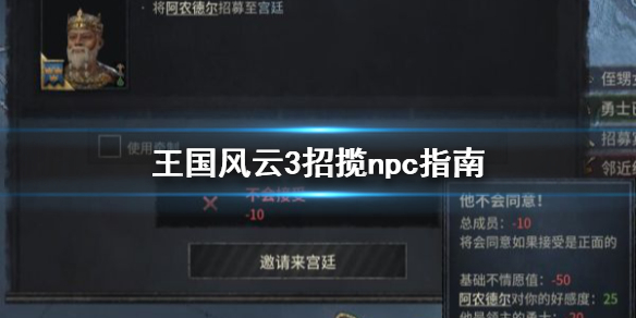 王国风云3npc怎么招揽?王国风云3的npc可以招揽来当做自己部下,但并不是所有的都可以招揽,下面小编就带来王国风云3招揽npc指南,一起来看看吧。