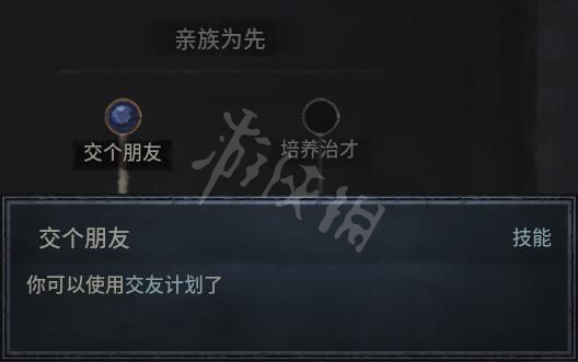学习了这个技能后就有交友(密谋) 这个选项了。