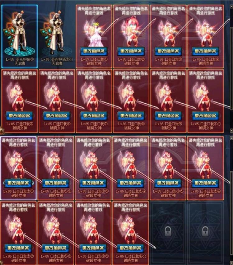游戏日报小游君觉得这位玩家或许还没有领会到DNF的真谛,这游戏不管怎样都得充点钱才行,一分不充的话就会出现图片中的后果。如图所示,这位玩家所有的搬砖号都被强行修改名字了,而且在修改的时候不管输入什么都现实非法字符,摆明了就是不给上游戏了。在多次尝试无果之后肥宅只得无奈退游,不得不说马哥这招比封号真是高明多了,这说不定还是在帮这位玩家减负呢。