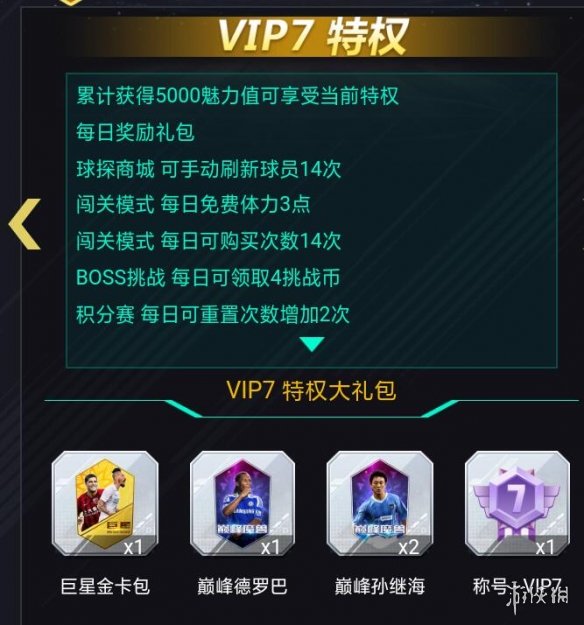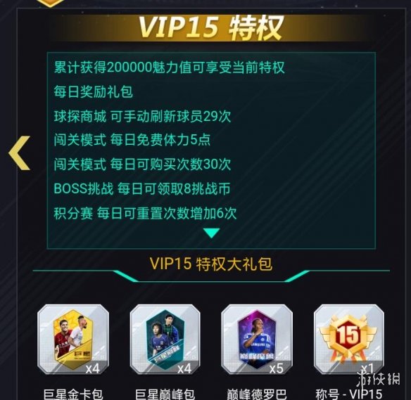 第二个方案就是直接充钱,购买月卡。黄金月卡包30元一共可获得6w金币,至少2金卡。至尊月卡包可以获得225000金币至少4金/巅峰卡。巅峰月卡包可以获得42w金币至少6巅峰卡。1元就可以等于1魅力值。到相应的魅力值就会获得相应的奖励,还可以获得孙继海,德罗巴超级巨星。