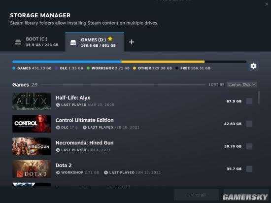 ·更新了Steam库文件夹UI,可以轻松管理各硬盘区划或硬盘间的游戏内容。