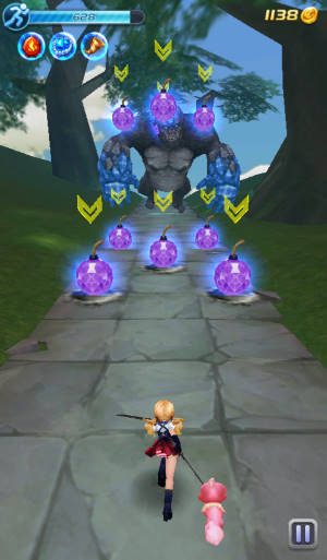 淘金秘境中有些路段上的紫色炸弹是没有办法完全接取的,玩家不用纠结这个问题,图中的5个紫色炸弹,实际上无论玩家怎么跑,都只能接取其中3个。