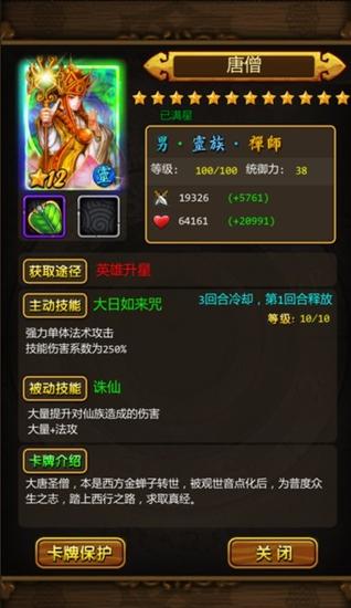 地藏王菩萨:仙族紫卡最强MT,并且同时具有debuff和buff,既能增加对方全体受到的伤害,还能增加我方全体仙族卡牌的攻击值,可以说是性价比极高的超级卡牌。但是获取难度较高,需要通过70级副本大雷音寺后在副本战斗中掉落获得。