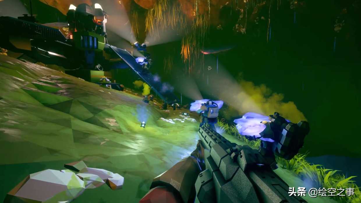 游戏整体上有两部分内容,一是探索挖矿,二是FPS战斗,在开始任务时我们需要在随机生成的洞穴中进行探索,共同面对虫潮的袭击,在挖矿得到足够多的目标矿物后就可以呼叫飞行舱了,然后玩家需要在规定时限内从虫潮中突围逃出。