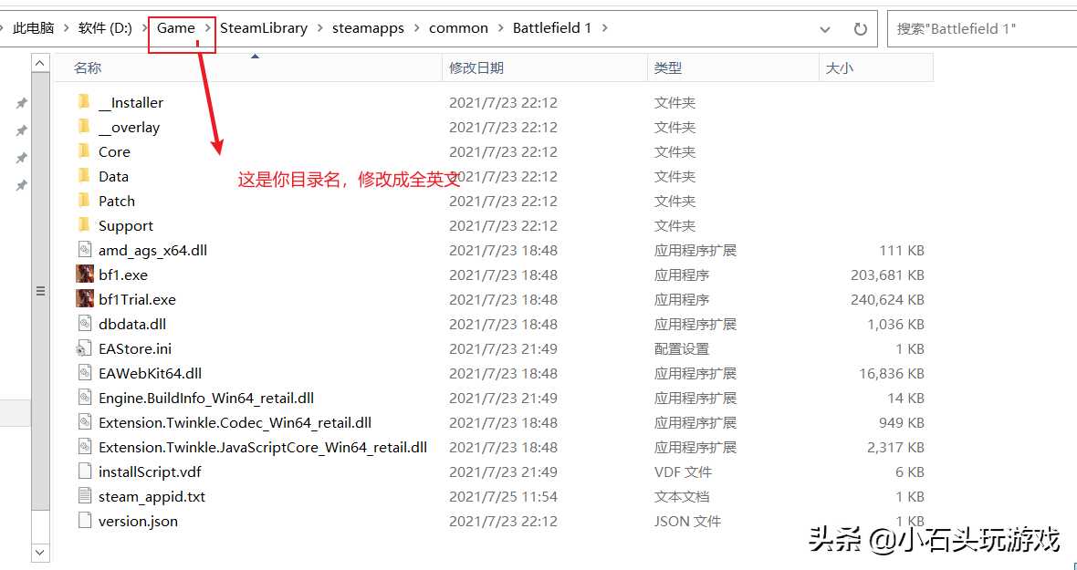 如果你的安装目录带有中文,找到你的战地1的安装目录,修改你的目录名: