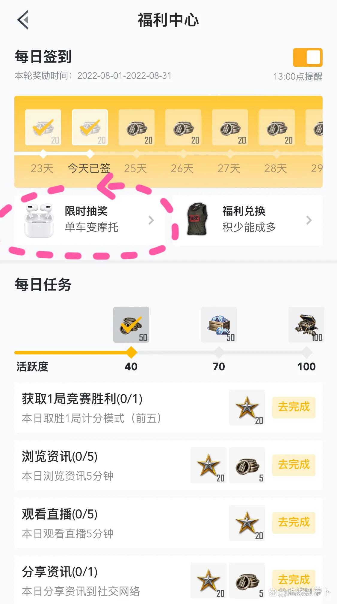 每天做任务可以免费领取福利币