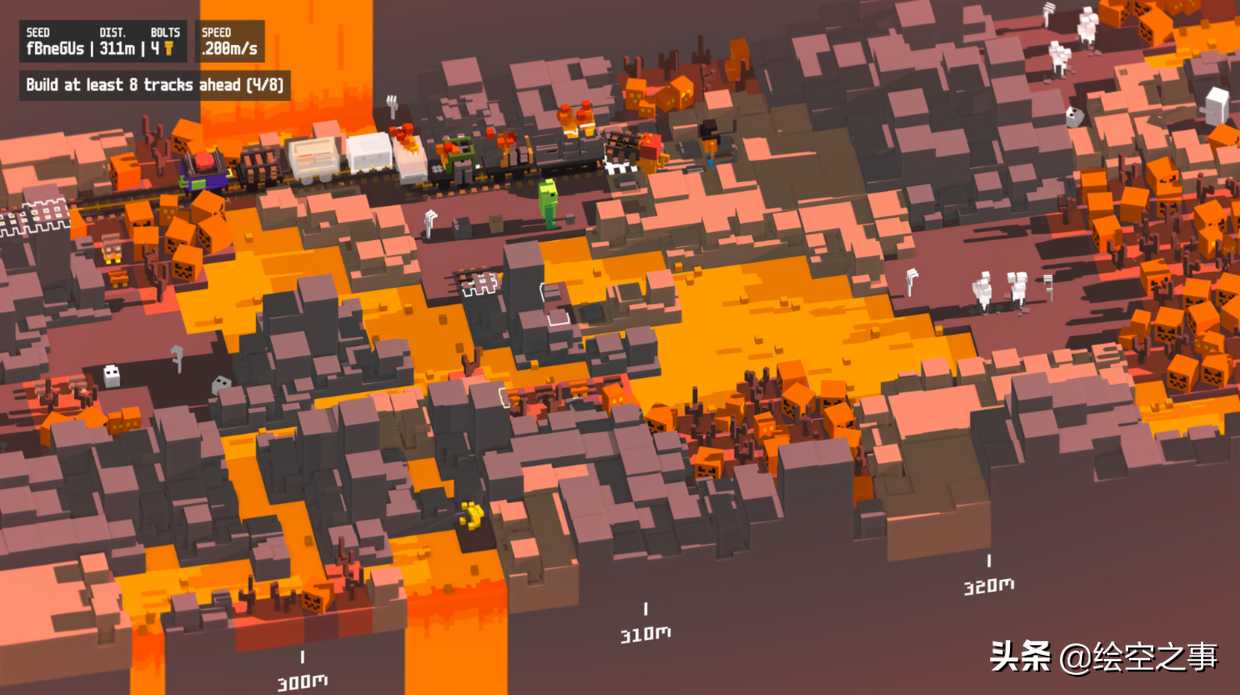玩家在游戏中需要互相配合,随机应变:挖铁矿、砍树,用铁矿和木材造铁轨,铺铁轨,造桥渡河、用水桶给火车降温、做任务等等事情以让火车维持运转并顺利到达终点。