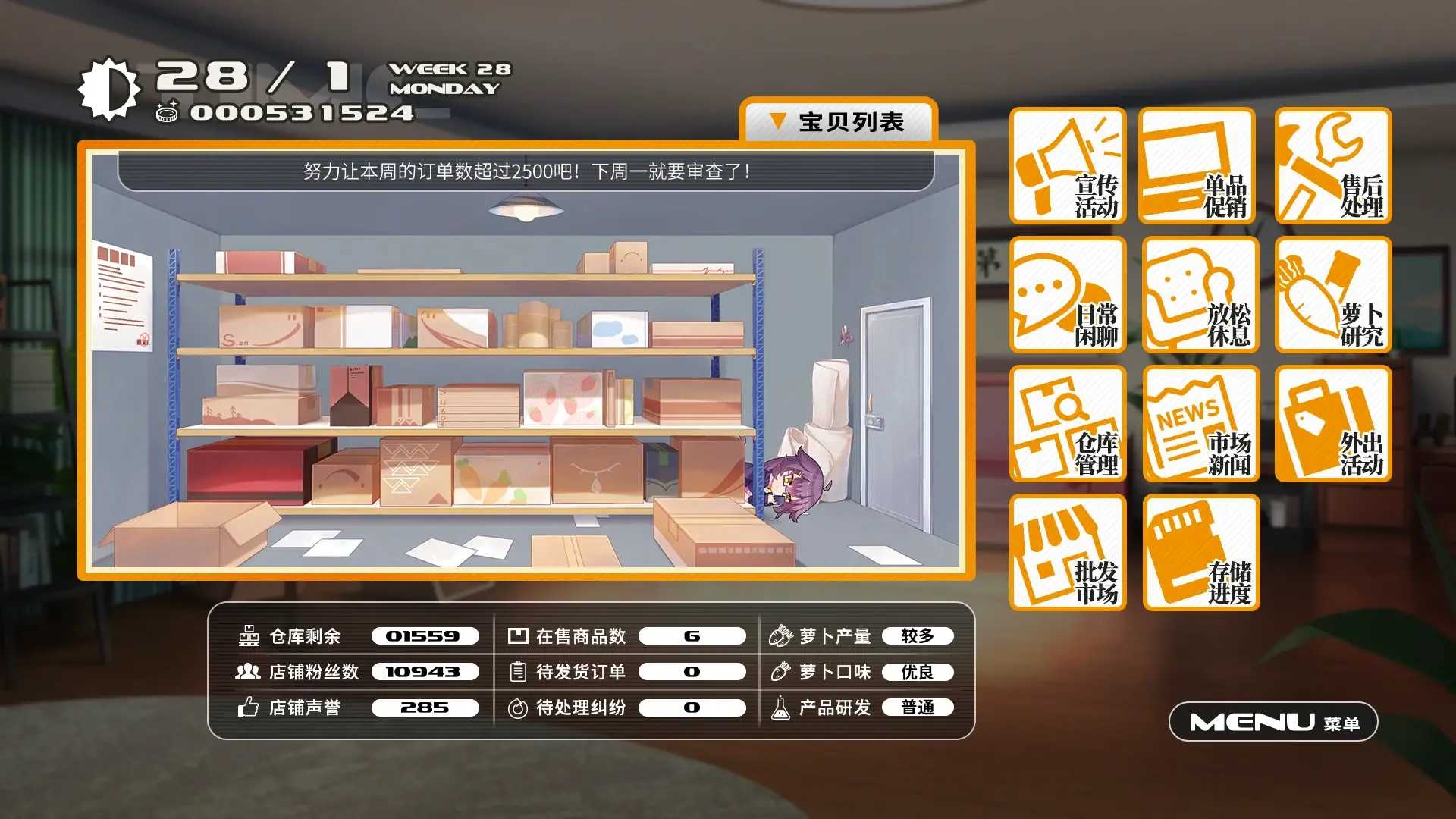 在细节上,游戏也根据自身玩法上的特点进行了改动。游戏有着清晰的时间线,以每周为一个周期,对商店的销售额进行结算。同时,还会有每周新闻作为周与周之间的过渡。其中不仅会介绍大世界中政策和人妖之间的矛盾纠纷,还有各路商品的行情变化。除了和剧情强行关联的商品品外,其它商品的价格随机变化,一定程度上丰富了游戏的可玩性。