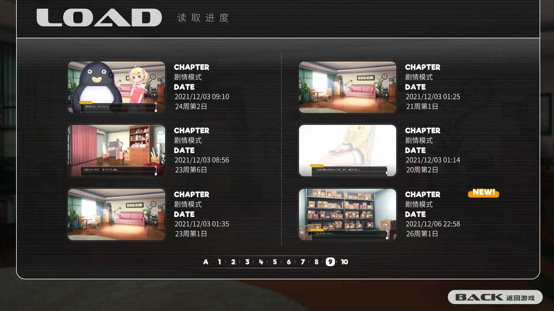 与一般gal不同的是游戏的读档中显示的是第几周,而非角色所对白,反而利用了自身游戏特性,更好地定位流程,强化了时间概念,是非常有心的设计