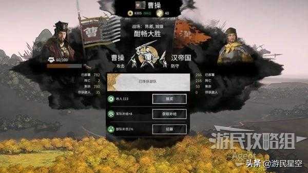 结算画面中,可以选择让敌军用钱赎买俘虏,或者换取军队补给,或者直接将其招募补充入自己的部队。