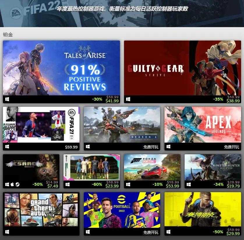 在Steam排出的榜单中,头部的大多均为体育、竞速类游戏,不过也不乏一些热门动作、FPS游戏,未来随着云游戏等形态的平台出现,控制器支持似乎也会成为关键。