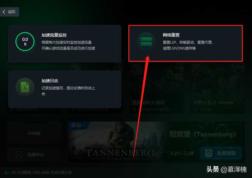 如果本地网络有问题的小伙伴,可以利用迅游重置网络工具游戏网络,在迅游加速器右上角点击三条杠-常用工具-网络重置,修复lsp之后重启电脑。小伙伴们也可以手动在电脑设置里面重置自己的网络,有时候本地网络不稳定有问题的话也容易导致登录失败,同时也可能会导致加速失败。