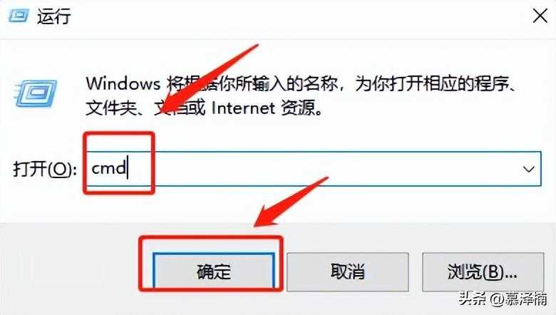 win+R键快捷键后输入CMD(大小写均可);