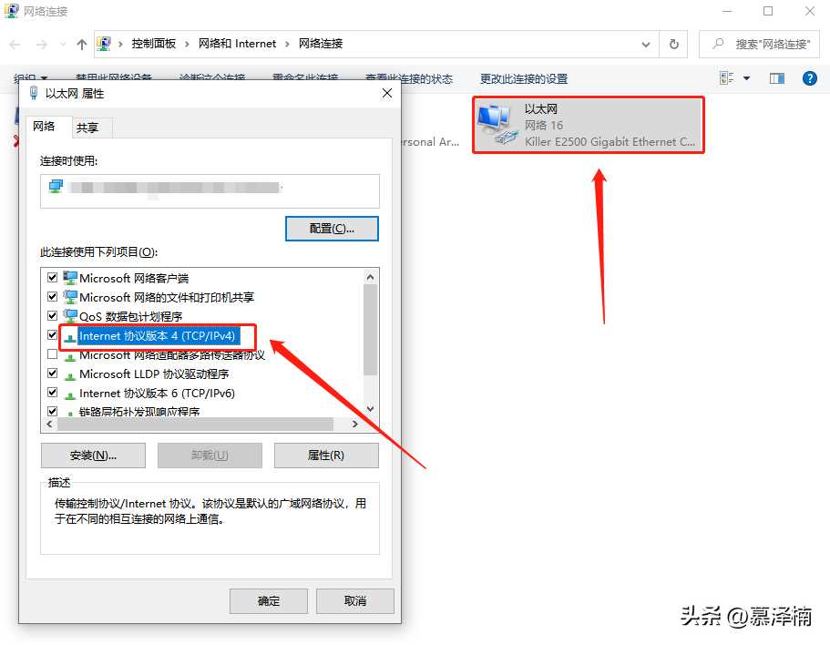 找到以太网后右键选中点击“属性”,在属性里面找到internet协议版本4并双击,然后将dns改为114.114.114.114;