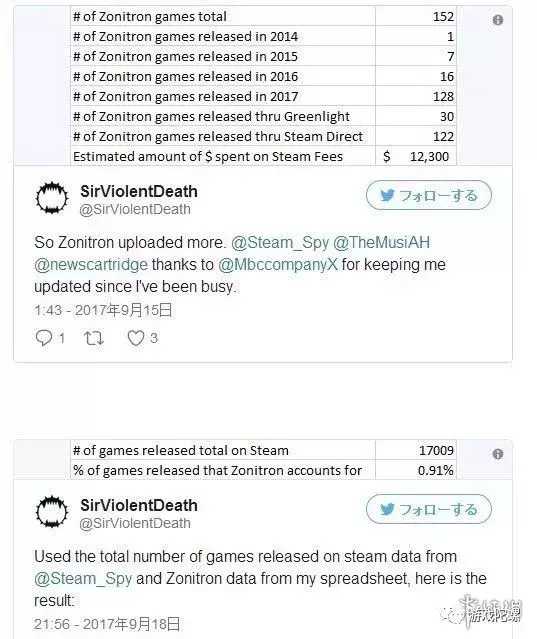 随着Steam Direct取代了Steam Greenlight之后的上线,今年Steam上架游戏的数量随之暴涨,例如前文提到的Zonitron Productions,这家游戏公司在今年上架的游戏就比2016年数量增长了8倍,达到了128个,接近Steam总游戏的1%,或许正是这种行为惹恼了Steam。