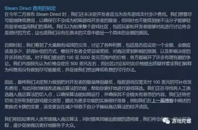 而随后Steam Direct的新政策则取代了Steam绿光,开发者需上交100美元,之后将进行人工审核,人工审核将决定游戏是否能登录Steam,只要游戏达到了1000刀的销售额的话,100刀就可以全额退还。说白了就是对于游戏开发来说,游戏上线更加简单了,特别对于独立游戏开发者来说,这是一件值得高兴的事。