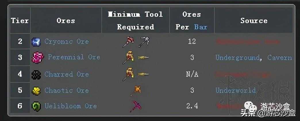 【Perennial Ore/永恒矿】、【Charred Ore/焦炭矿】(需要至少神圣镐)