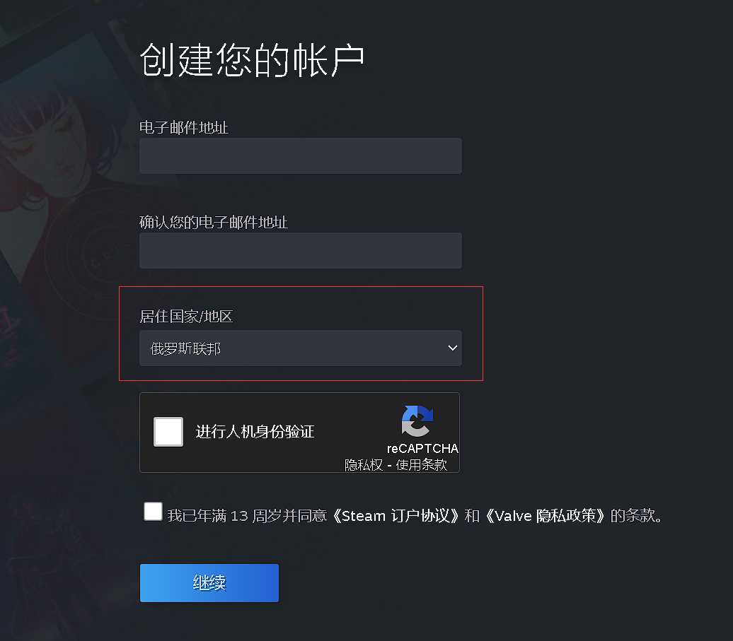 3:打开steam注册网址,可以看见地区被自动识别到你想去的区服了