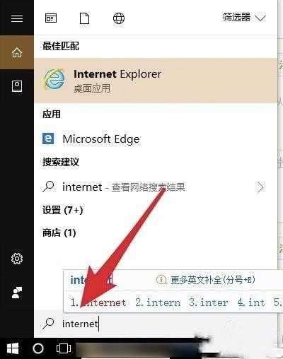 进入桌面系统搜索栏中输入Internet。