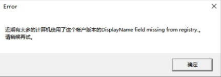 近期有太多的计算机使用了这个账号版本的DisplayName field missing from registry,请稍后再试。