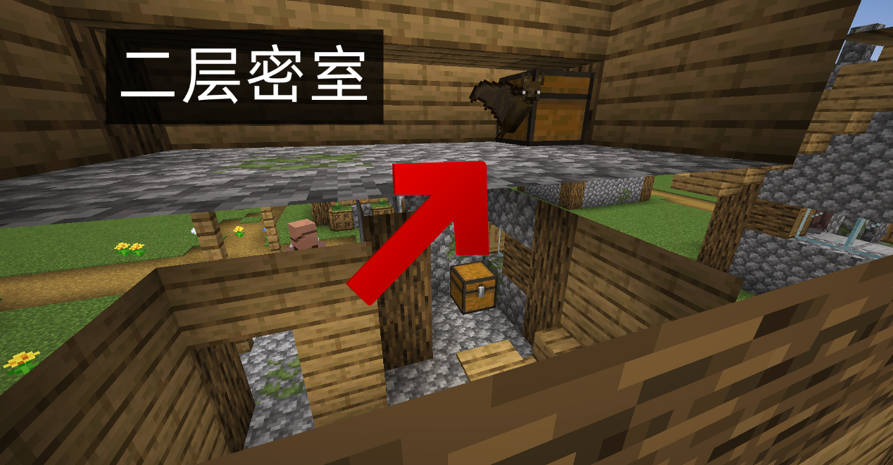 但很多人不知道的是,在铁匠铺的屋顶上方实际有一层阁楼,阁楼中就隐藏了一个箱子。这个箱子必定可以开出一个附魔金苹果。当然,这个箱子的生成是有一定概率的。