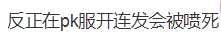 连发本身并无问题,我也认同“是非分明是种病”的看法,没必要那么清楚。但也希望,PK场连发的使用者不要引以为荣。