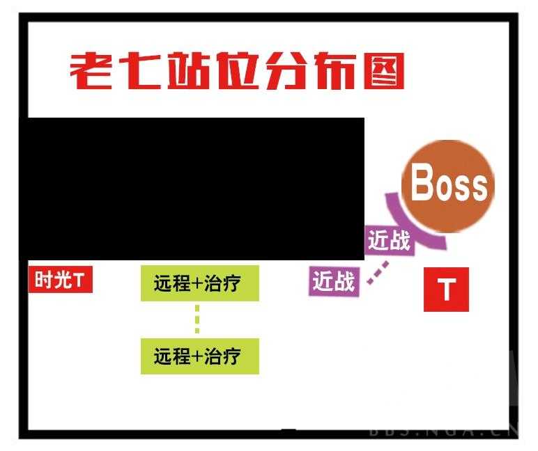 最难时光组合:需要指定T去吃时光,站位下图有,另外MT利用门的位置卡好狗头,BOSS战开始MT和2T上去建立仇恨,2T保持仇恨序列第二位,DPS暂时不打,保守打法可以等到第一次AOE出现之后输出,这个暂且不论,那么出现时光之前除了2T和一部分治疗以外所有人要吃时光,2T在下图的最左边墙角躲时光并等BOSS自动过来即可,这个时候治疗必须注意当前时光T血量,时光T自己注意好交技能顺序。时光之后BOSS会自动回位,MT需调整BOSS位置,时光T也可以过来继续输出,再等下一次时光,循环即可。哪怕时光目前玩家水准也不太需要时光,分配的优先级建议是:猎人 >猎人组治疗 > 1T组的治疗 > 1T。