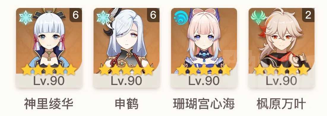 3,热门组合,比如神鹤万心,雷九万班,这种组合队,有几个强力五星角色的账号,也是非常受欢迎。