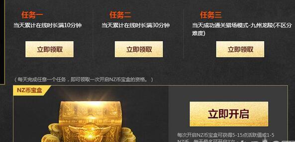 1.活动期间,每天完成登录及任务即可直接领取NZ币。NZ币在活动期间可通过参加活动直接累计;