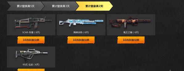 累计登录天数,还可使用活跃值直接领取游戏内的神器、神兽枪及专属永久武器:鬼炎M4(永久)。但每天仅限领取一把武器,每把武器活动期间仅限领取一次。