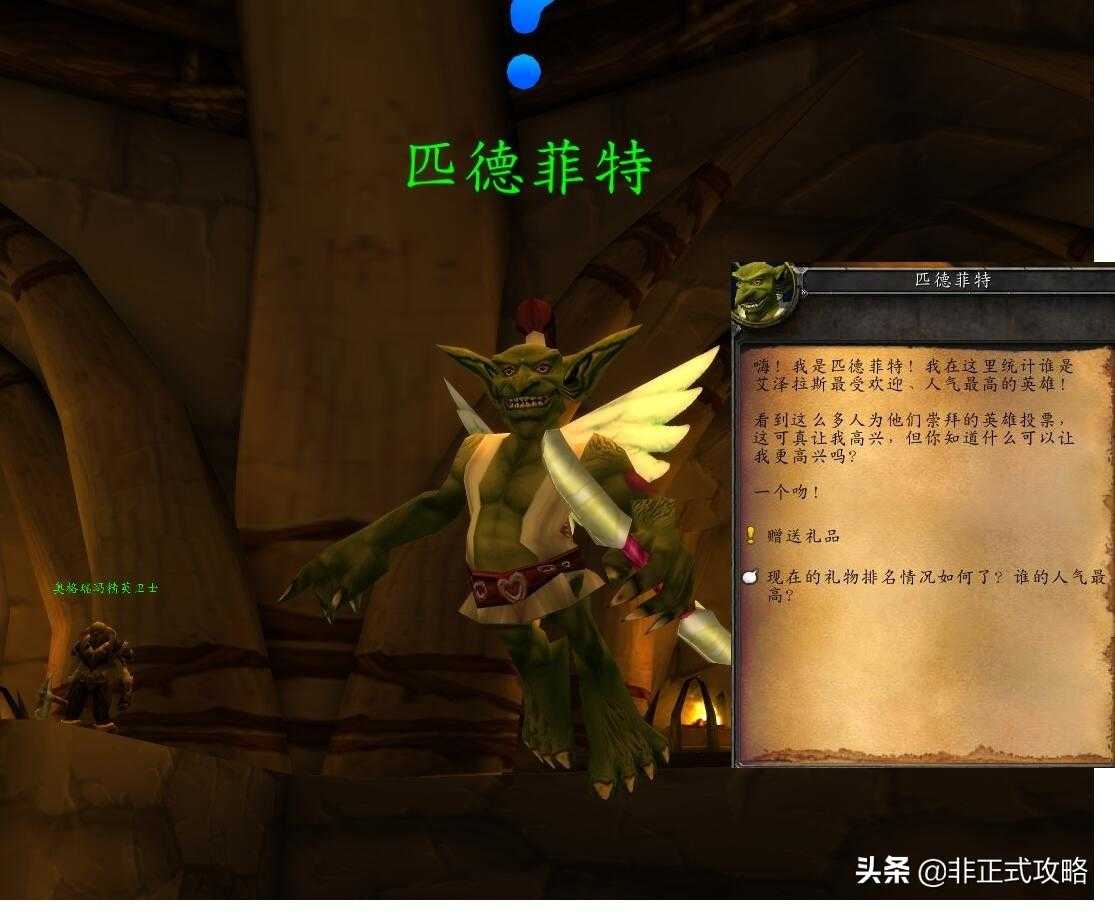 联盟阵营的任务有细微区别:这里需要一张暴风城卫兵的卡片。这张卡片需要你给自己喷上买的古龙水/香水,然后带着爱情信物去找暴风城的女性NPC/男性NPC互赠礼物。在谢礼里面有几率开出这个任务卡片。