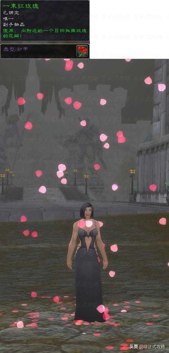 在最初的60级香草时代,情人节活动期间打特定的五人副本,在一些boss的身上有几率会掉落一个特殊的副手物品“一束红玫瑰”,效果是不断从天而降落红色的玫瑰花瓣围绕在角色身上,持续2分钟,CD5分钟。据说这四个boss分别是: 厄运西的【伊琳娜·暗木】、斯坦索姆血色区的【档案管理员加尔福特】、黑石深渊的【铁炉堡公主茉艾拉·铜须】(需要击杀公主)、 通灵学院的【博学者普克尔特】(院长房间),不知现在的怀旧服国服是否仍保有这个设定,有心的同学们可以去尝试一下,祝你们好运!