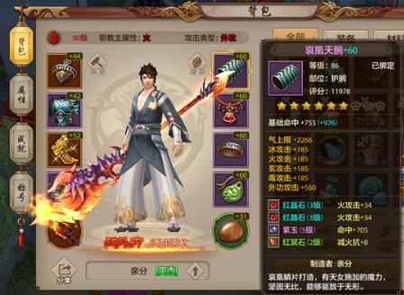 各种攻击型装备都会加许多属性攻击,很多时候都不止加火属性一种,明教少侠选择攻击型装备第一点必须要有火属性攻击,另外的属性,比如冰、玄、毒能有也尽量有,因为所有属性其实都可以提升明教的技能伤害,只是没有减抗,PVP打不出伤害,但是PVE仍然有用。