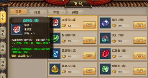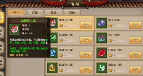 1级的血精石提升500多血量,只要5元宝,而2级的血精石要25元宝,血量只提升1000多点。也就是说我们花费了5倍的元宝数量,却只提升了一倍的战斗力数值。
