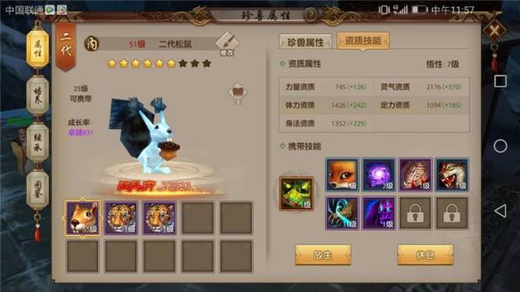 2、外功型珍兽,最明显接触到的有我们做任务是时需要的狗宝宝,福利中七日登录第五天所送的老虎宝宝。