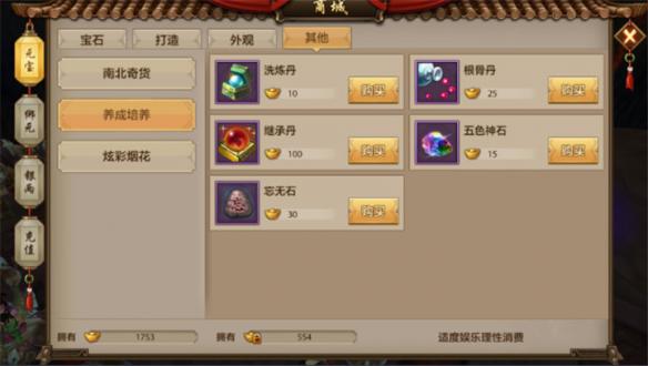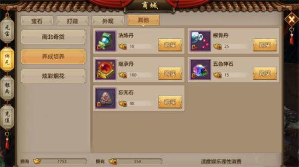 若宝石方面自认为比较优秀的少侠也可以把绑定元宝消费到养成培养类,提高珍兽的属性提升,购买根骨丹,提升珍兽的悟性等级,让珍兽资质更加优秀的情况下还可以多出两个技能格子。而审美要求比较高的少侠,则可以购买外观类商品,外观类商品包括时装、坐骑和造型,花不多的绑定元宝就可以为自己置办一身漂亮行头,岂不是大大的增加了少侠玩游戏时的心情。