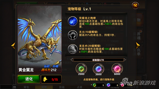 黄金翼龙算是夜煞的加强版,技能效果和宠物属性各方面都比夜煞要高,也是我们前期不错的宠物选择,如果大家不喜欢夜煞的外形,不妨就培养一个黄金翼龙吧。