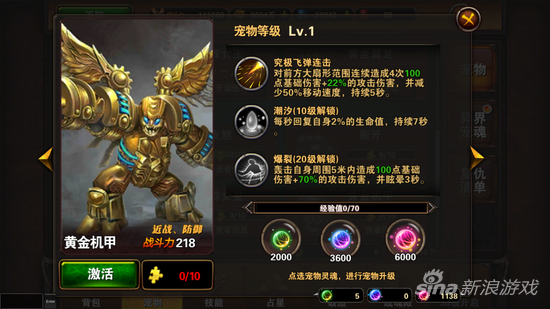 黄金机甲的技能跟魅魔差不多,都具有大范围控制敌人的能力,不过魅魔只能控制小范围内的敌人,而黄金机甲则可以控制大范围内的敌人,而且是两个控制技能,是一个非常强力的控制型宠物。